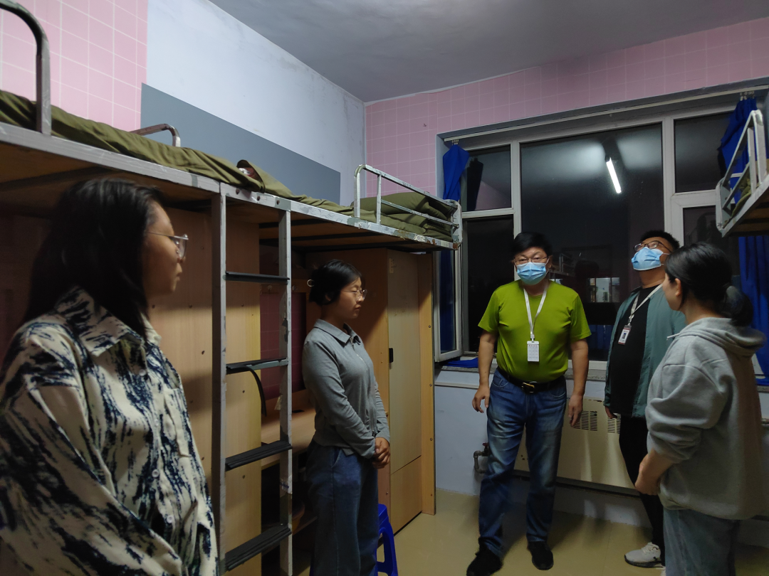为进一步了解同学们在宿舍的学习生活情况,提高同学们对疫情防控的安全意识,关心在校学生的身心健康。2022年9月3日,生命科学学院院长胡铁军、党总支副书记臧连兴、19级辅导员王亦衡老师、20级辅导员邢艳凤老师、21级辅导员张莹老师以及22级辅导员姜涛老师在学生干部的陪同下深入学生寝室,开展寝室检查和学生慰问工作。