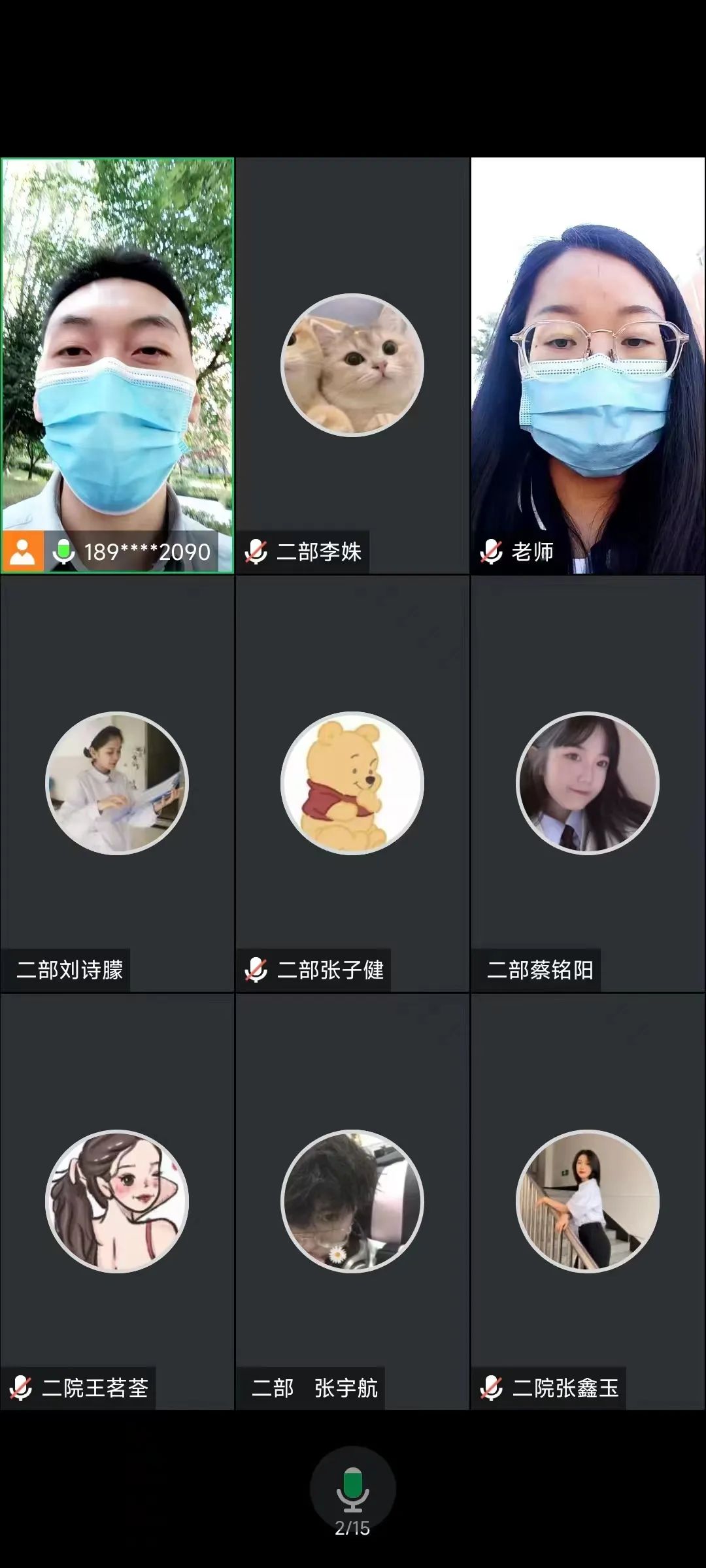 针对复杂严峻的疫情形势,院长闫立安询问了不同实习医院的同学们学习、生活和安全情况,并强调,辅导员做为第一责任人,就疫情防控期间的实习生管理工作提出要求:一是要提高思想认识,充分认识当前疫情防控严峻形势,严格执行学校、实习单位疫情防控要求,落实落细疫情防控工作;二是要扛起疫情防控责任,做到底数清,情况明,反应快;三是强化实习期间的安全管理,认真做好食品安全、交通安全、个人防护措施不松懈等安全教育,确保学生安全稳定。
