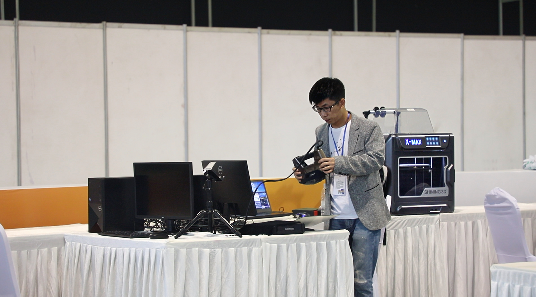 长春国际会展中心8、9号馆内,几位老师正带领学生在增材制造、CAD机械设计、车工比赛场地进行设备测试、3D打印机、扫描仪安装、机床调试等收尾工作。