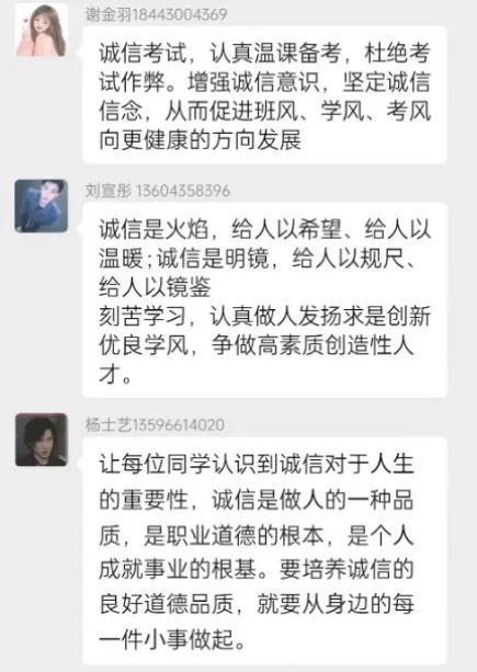学生们纷纷表示,诚实守信、言行一致,一直以来都是中华民族的传统美德。我们要调整心态,脚踏实地,正确认识考试意义,同时会合理规划时间,有针对性复习,以最饱满的精神状态迎接考试。