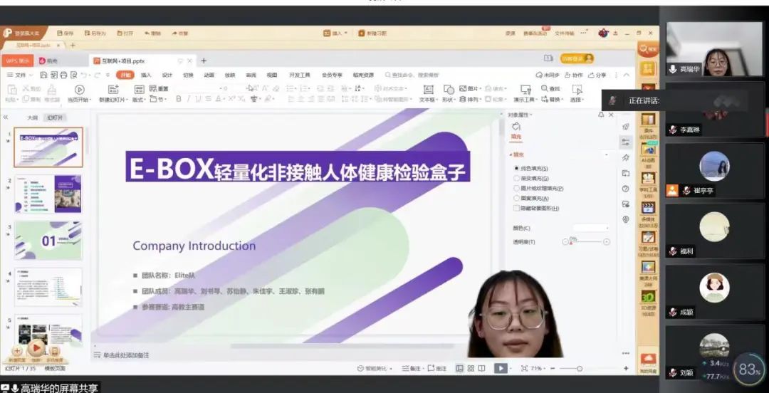 选手通过宣讲PPT的形式,分别从创业理念、创新创意等,多种形式展示项目的主要内容。