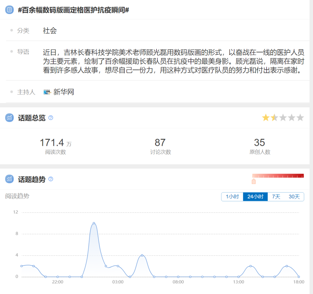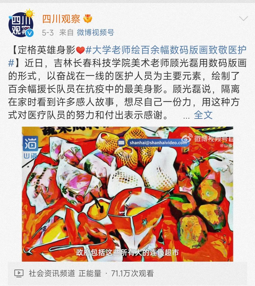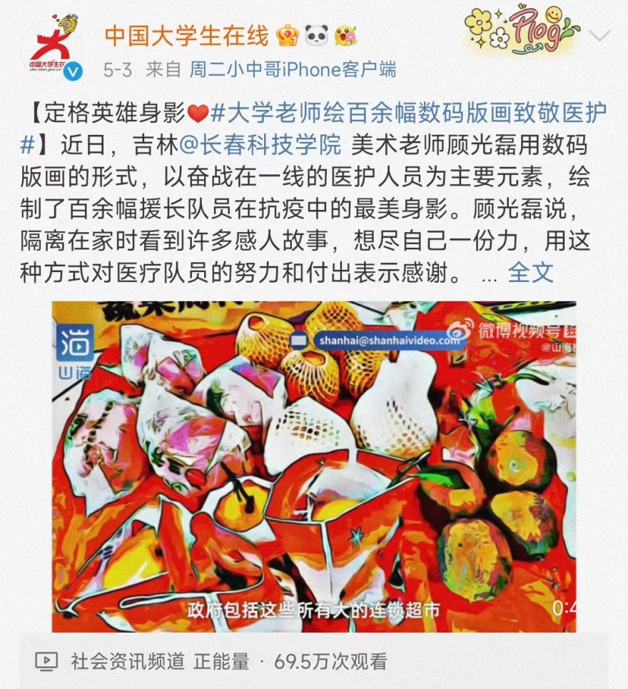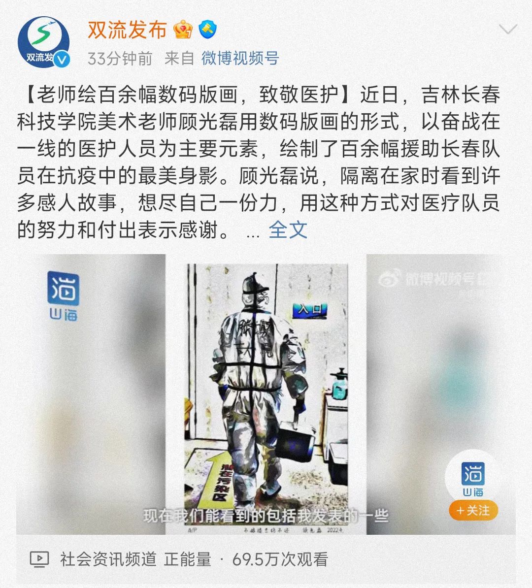 版画的作者是长春科技学院美术老师顾光磊,这些版画以奋战在一线的医护工作人员为主要元素,既有单人肖像,又有群体工作场景,艺术展现了援长队员在长春“疫”线“战斗”最美身影,再现了各路医疗队员并肩作战、共抗病魔难忘瞬间。