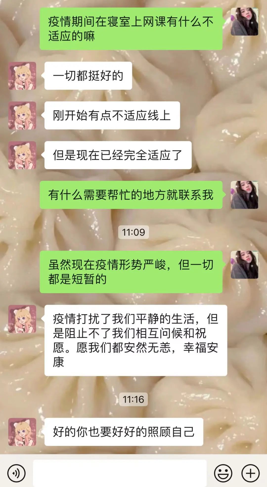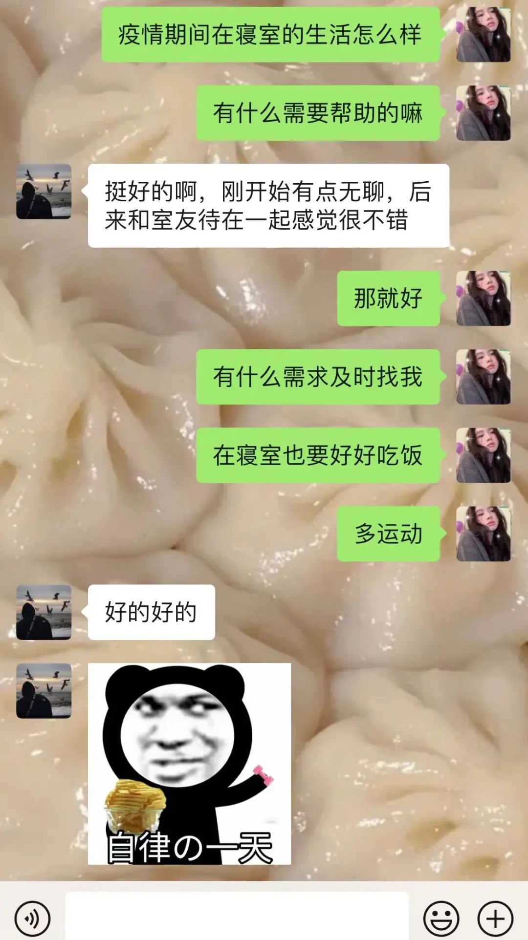疫情只是路过,生活还要继续。在寝室服从学校的安排,就是对抗击疫情最好的帮助。我们无法预料未来,能做好的只有眼前,希望我们平平安安就好,疫情阻挡了太多美好,但我们不能悲观,仍应该保持一颗乐观向上的心态。咬定青山不放松,不破楼兰终不还。战疫情、稳发展,群策群力、守望相助,在大战中践行初心使命、在大考中交出了合格答卷,社会主义的优越性显而易见。