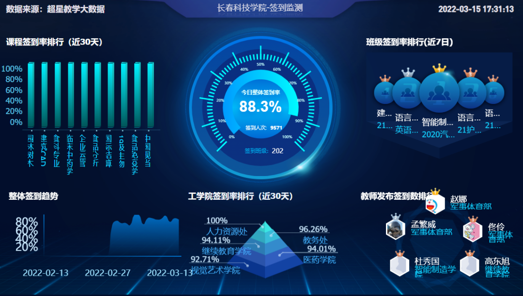 为确保线上教学的质量,进一步加强抗疫期间线上教学的组织管理、检查督导和考核评价。成立由校领导、教务处、各教学部门人员组成三级线上教学领导小组,负责线上教学的筹划设计、资源调配、组织实施和检查指导;建立校(院 )长、学工副书记、教学副院长、教学秘书、专业主任、任课教师六级教学联动机制,逐级签订线上教学责任书;采取校(院)长“云听课”、教学领导小组“云抽查”、专业班主任入群“云检查”等方式,督导检查教学情况;落实线上教学学生评分、计划执行日报告、运行质量周通报等措施,做到“开课底数清、教学效果清、师生状态清”,保证了线上线下等质同效。