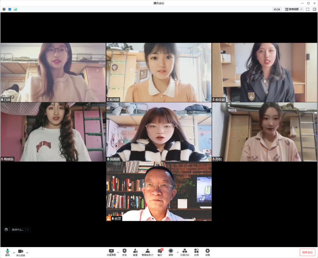 林刚老师大力开展在线二课堂英语教学实践活动,鼓励同学们以寝室为单位参加英文书法在线比赛、抗疫主题的英文海报在线大赛,以"China's Wisdom for the World"为题的英文演讲在线比赛、英语配音在线大赛、英语导游大赛、英语韵律操寝室大赛、英语歌手在线大赛等活动。其中,在"Believe in China"的英语诗歌朗诵视频展示活动中,林刚老师耐心地对每个同学的发音进行在线纠正,同时将纠正后的朗诵剪辑成英文版“相信中国”的诗歌视频作品。为同学们提供了丰富多彩的线下寝室英语文化活动。用英文讲好中国故事,以赛助学,以赛促长,让同学们在疫情防控期间也能愉快地学习,健康地成长。
