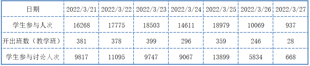 (图1:线上教学第三周课程开出情况)