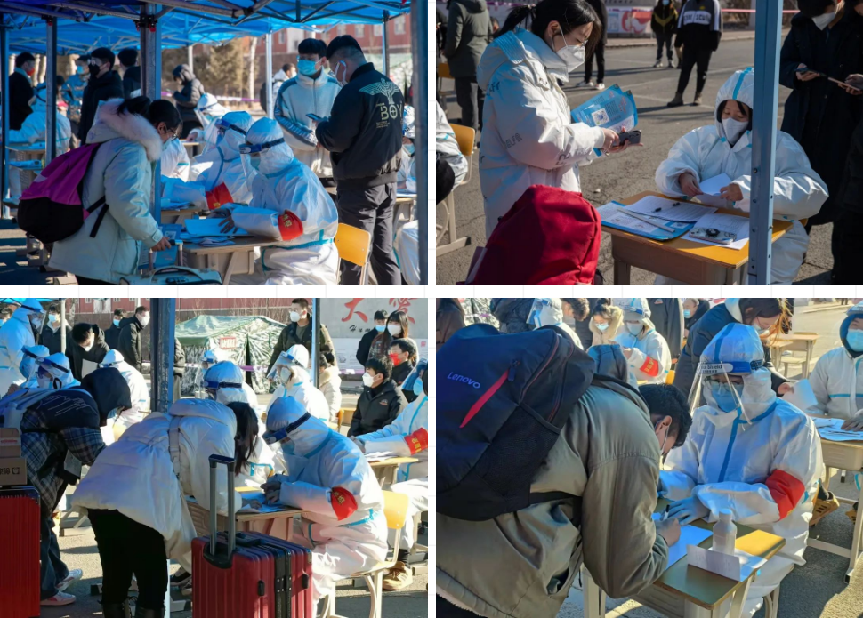 同学们自觉佩戴口罩,配合志愿者查验行程码、核酸检测报告……志愿者们严格按照规定对返校学生进行信息确认,保证每一位入校学生皆符合条件。