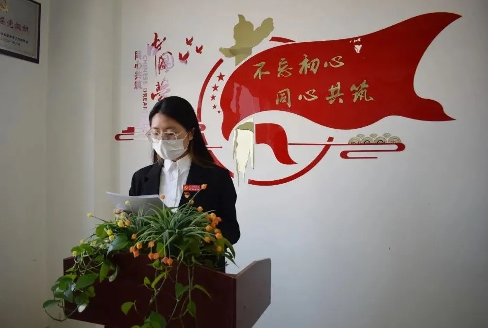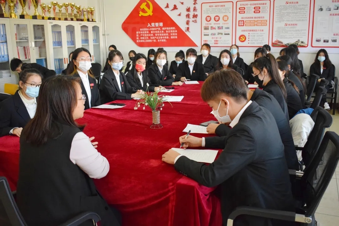 < 邢艳凤老师指出:预备党员这个身份既是一种荣誉,也是一份责任,只有一步一步找到自己的定位,才能把自己的价值进一步提升。在一百年的非凡奋斗历程中,一代又一代中国共产党人,顽强拼搏,不懈奋斗,共同创造了我们的美好生活。习近平新时代中国特色社会主义思想是我们党的最新的创新理论,是引领中国特色社会主义这艘巨轮驶向中华民族伟大复兴的根本保障,我院预备党员要坚决学习好、贯彻好这一重大思想,并在院内组织宣传学生应当具备的一些重要的精神,其中最重要的就是必须具有积极的心态和乐观的精神,以及敢于向困难挑战的精神,这为我们在日常的学习和生活中提供了劈开荆棘的利刃。