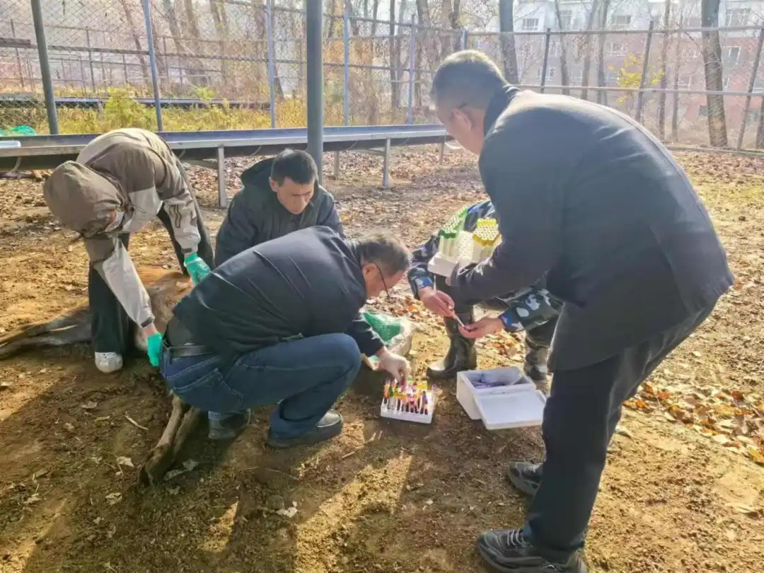 在追求医学前沿的道路上,附属医院携手鹿茸研究所一行6人,共同踏入了充满希望的研究之旅。他们的目标明确而崇高——深入鹿场,对已选定种鹿进行样本采集,为的是解锁“鹿”这一传统药材背后的现代医学秘密,探索其在促进人类健康中的潜在价值。