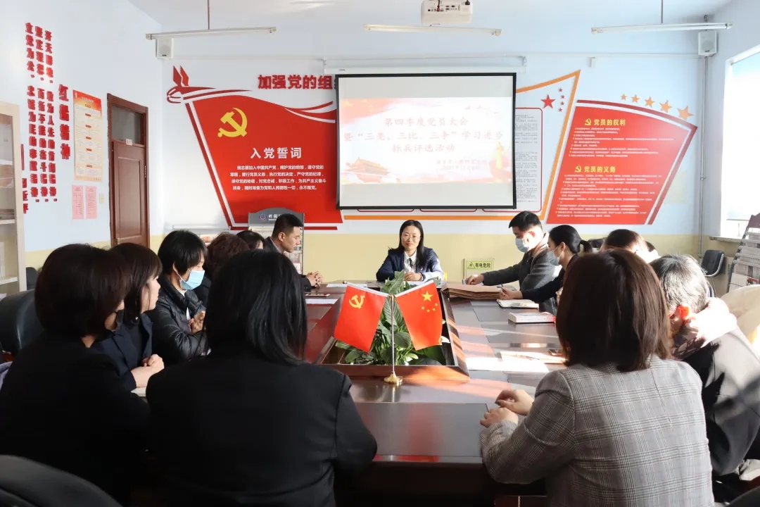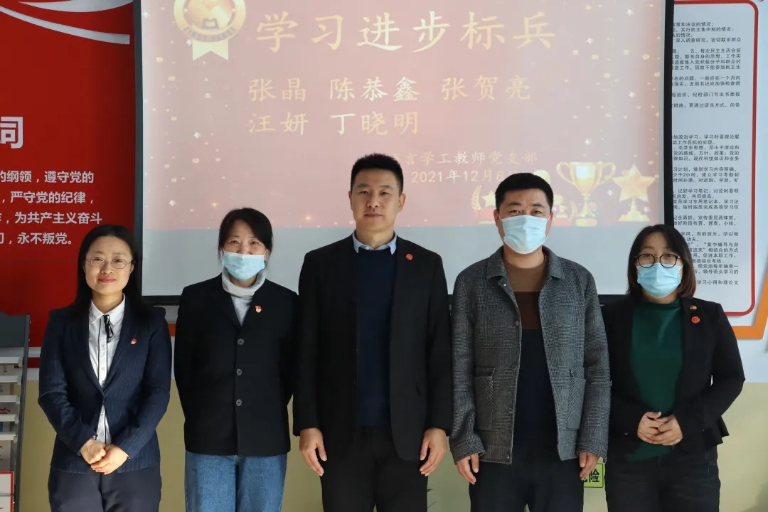2021年12月8日11:20,语言文化学院语言学工教师党支部于第一教学楼121党团活动室召开第四季度党员大会暨“三亮、三比、三争”学习进步标兵评选活动。本次会议由语言文化学院语言学工教师党支部书记张晶主持,语言文化学院党总支副书记陈恭鑫及语言学工教师党支部党员参加了此次会议