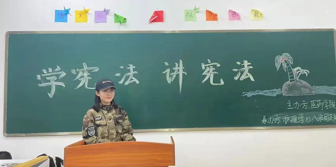 为进一步加强法制教育,树立良好的法律意识,提高自我约束和自我保护的能力,有效地维护社会稳定发展。结合我校教育工作实际,2021年11月24日晚18:30,医药学院于第二、第四教学楼举办主题为“学宪法,讲宪法”主题班会。