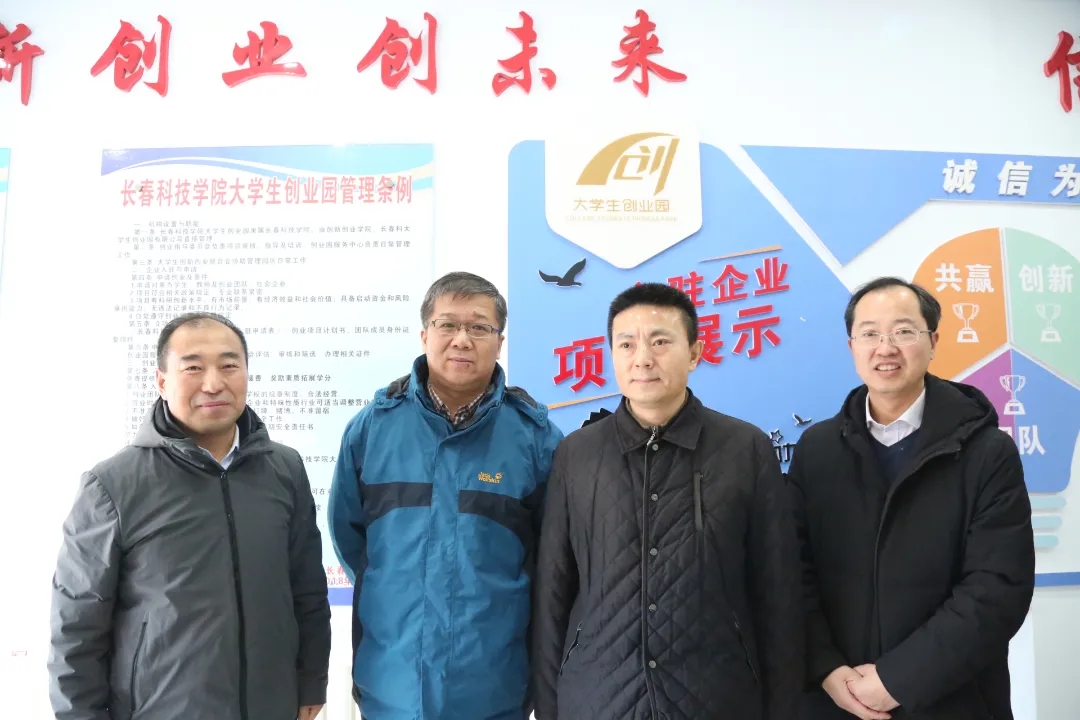 为了进一步建设我校创业孵化基地,提升基地孵化能力,锻炼大学生敢创、会创,培育长科人创新创业精神,2021年11月27日省级创业示范孵化基地项目评审专家莅临我校检查指导工作。长春科技学院党委书记林佳彬,创新创业学院院长杨继,创新创业学院老师冯嘉庚、刘娟陪同领导检查工作。