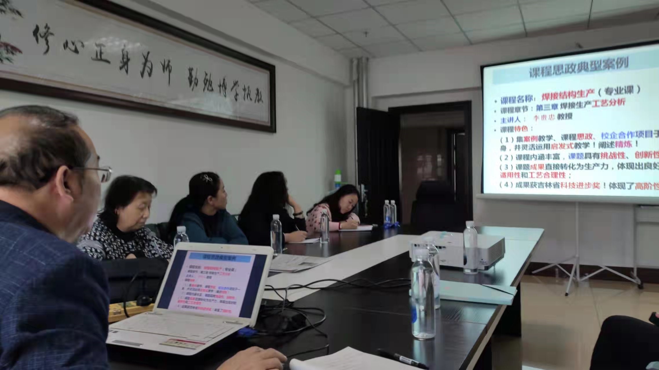 会议首先由李贵忠主任现身说法,以他主讲的《焊接结构生产》课程的核心章节-《焊接生产工艺分析》为课程思政典型案例,将吉林省教育厅科研课题《联合采煤机滚筒齿座焊接冷裂纹产生原因及工艺对策》的研究过程为课程载体,按照示范课程的水准和焊接专家的风范,依照科研工作的路线与进程,运用深入浅出、精练风趣的语言,全面精准的诠释专业性很强的术语和理念,深入细致地为大家上了一堂课程思政与专业案例教学深度融合的精彩一课。