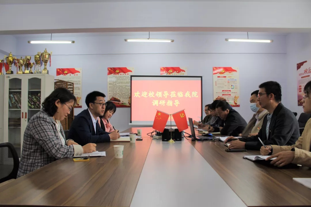 为深入学习贯彻习近平总书记关于加强高校党建工作的重要论述和深入贯彻第二十七次全国高校党的建设工作会议精神,紧扣立德树人根本任务,全面提升学校基层党建和思想政治工作质量标准,创新推进学校党建和思想政治工作新发展新动力,为全面落实从严治党要求,进一步夯实基层党组织建设,推进党史学习教育常态化、制度化。近日,校党委书记(督导专员)林佳彬,党委组织部部长高杰、党委组织部副部长李亚楠深入各分院党总支和直属党支部走访调研基层党建和思政工作,了解工作开展情况,并与各分院党总支负责人充分交流,征求意见建议。分院党总支书记(院长)、副书记,教工、学生支部书记、系主任,学生辅导员等同志参加会议。