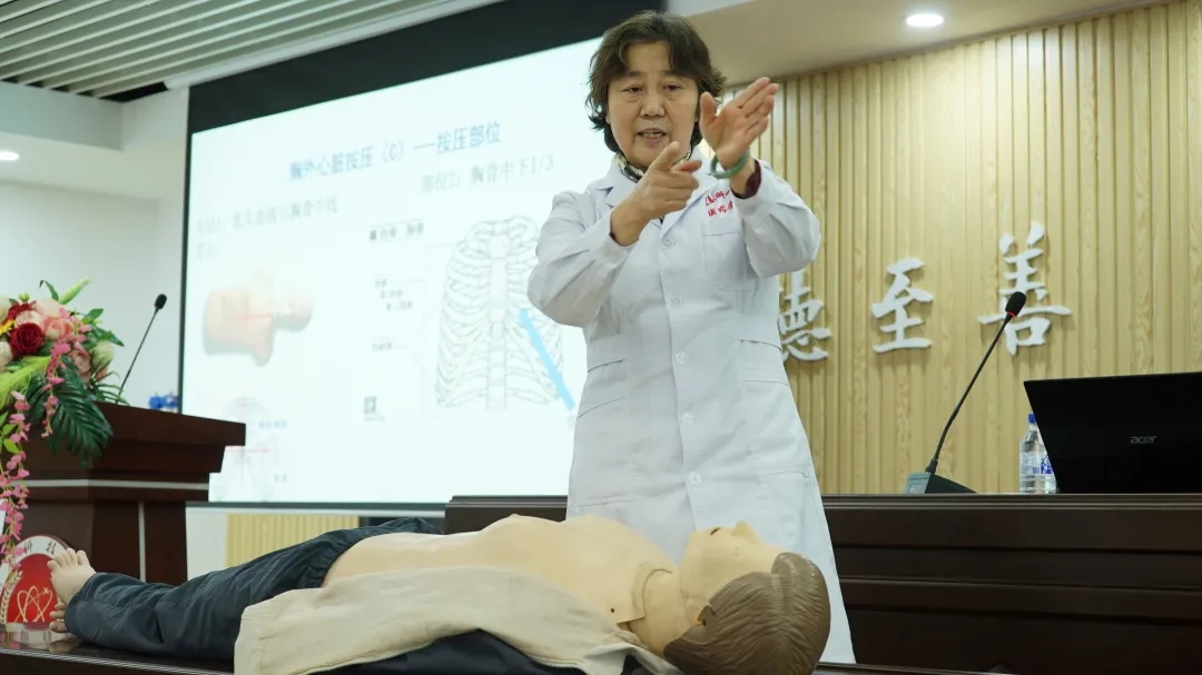 吕淑琴教授通过PPT、现场示范、真实事例讲解等方式,重点围绕紧急呼救、心肺复苏、自动体外除颤器的使用,以及意外伤害及突发事件处理等内容讲解了应急救护知识和基本救护原则。她还特别强调了在突发意外伤害和急危重症情况下,应急救护知识对挽救患者生命的重要性,尤其是心肺复苏术对心跳骤停患者施救的关键作用。