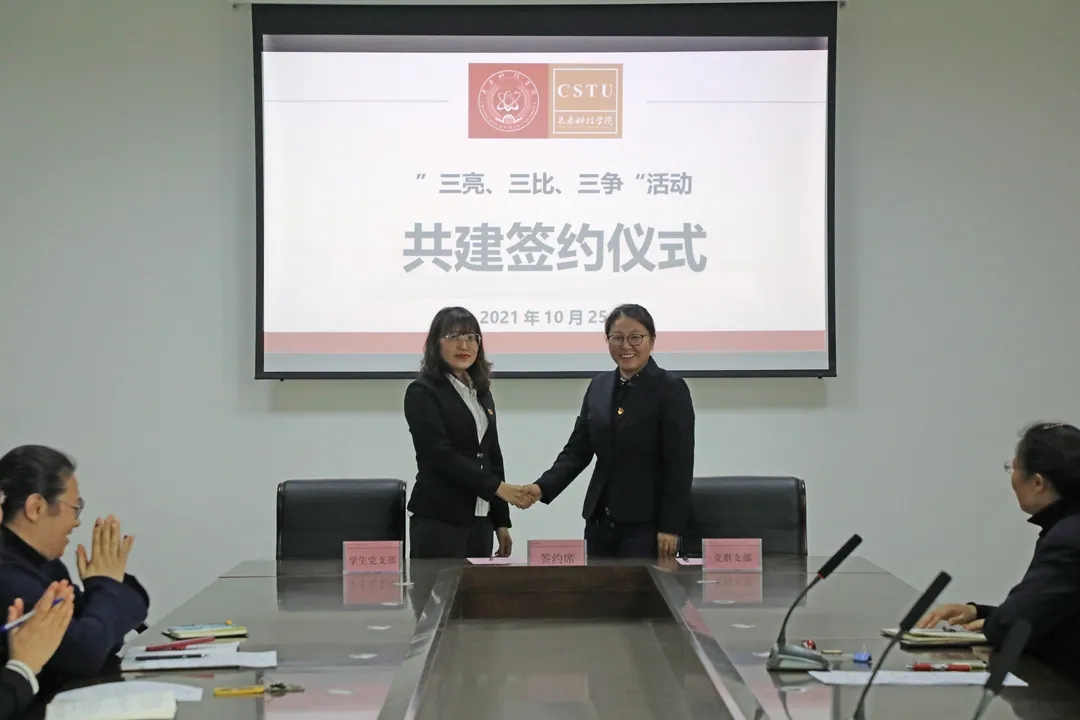 活动中,党群支部创新举措与生命科学学院学生党支部举办了共建签约仪式。今后将在以下三个方面开展共建:一是建立“三亮、三比、三争”活动共建小组,加强支部堡垒建设。二是以主题党日、专题党课等活动为载体,定期开展丰富的学习交流活动,坚定师生信仰,强化支部政治功能。三是结合党员承诺和党员志愿服务等工作,开展志愿活动,支部党员真正下沉到基层为老师和学生办好事、办实事。