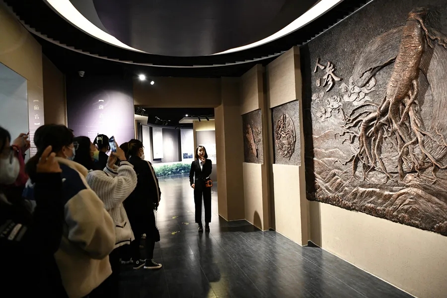 最后,在博物馆内全体学员又参观了人参展厅,人参展厅主要展示了人参的起源和应用,人参的文化、资源分布、栽培、采收和加工,以及以园参、山参、西洋参、高丽参为代表的人参品种。学员们非常感兴趣,他们对人参的起源、文化等有了系统的了解,一株株形态各异的人参立体地展示了其历史和文化,以及在我国的发展历史和围绕人参所形成的民俗文化。