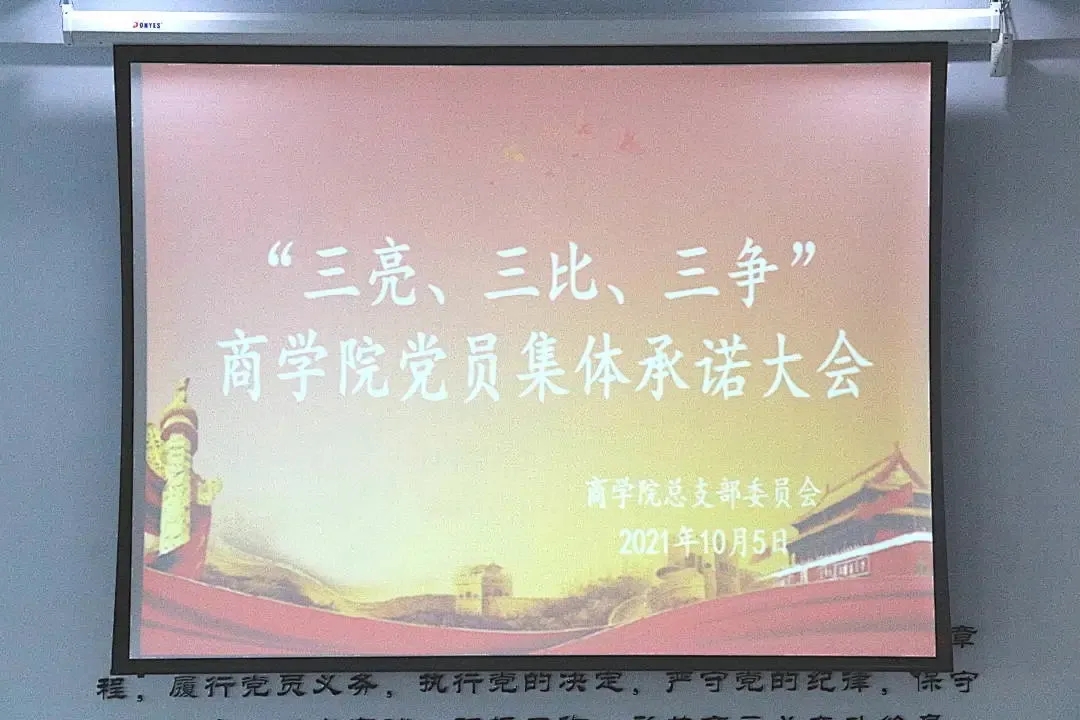 为加强基层党组织的战斗堡垒作用,推动学院党建工作、专业建设等各项事业快速健康发展,充分发挥学院全体党员的先锋模范作用,10月5日商学院党总支在第二教学楼410党团活动室开展了“三亮、三比、三争”党员集体承诺大会。