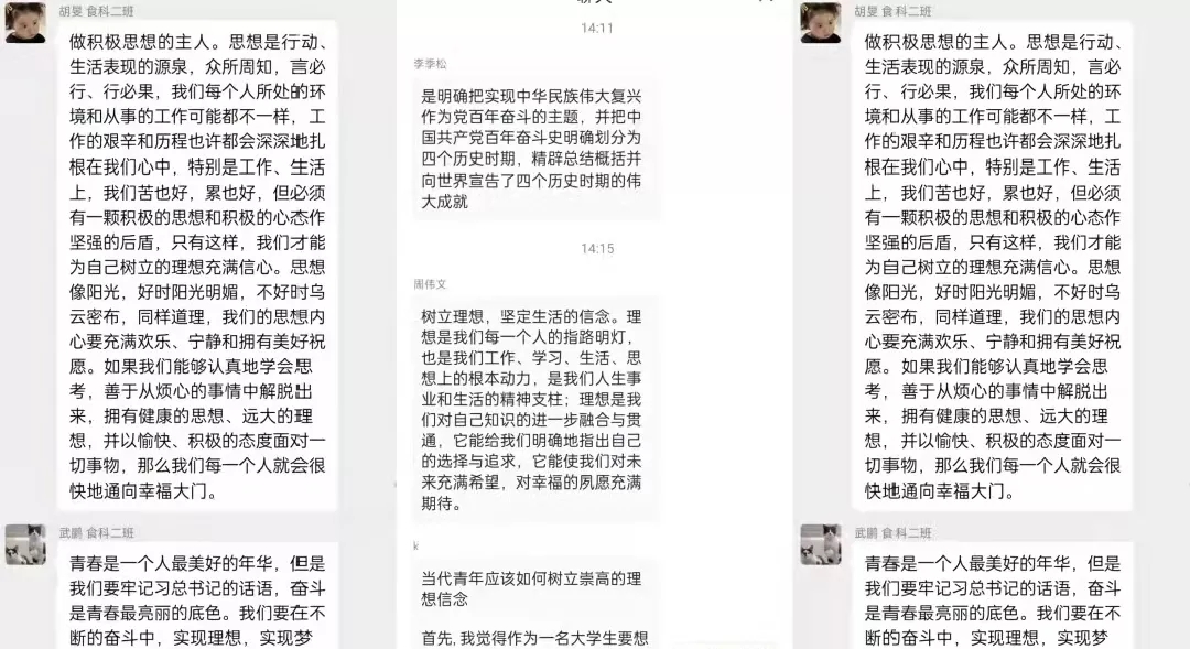 听完同学们的发言,生科学子们纷纷表示要继承革命先辈们那种矢志报国的理想信念,舍身成仁的爱国精神,勇于担当的高尚情怀。同时在今后的学习与生活中,我们要时刻保持清醒头脑,加强理性思考,明确努力方向,提升个人素养,完善学业、职业规划,做好“逆水行舟”的思想准备,保持“迎难而上”的冲锋劲头,全身心投入到社会主义经济建设发展中去,为实现中华民族伟大复兴贡献力量。