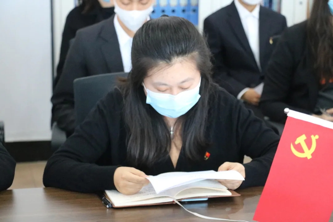 最后,全体党员面向党旗进行庄严宣誓。重温入党誓词,是对党员不忘入党初心,时刻牢记使命,勇当先锋模范的要求,时刻提醒着所有党员同志们,作为一名共产党员要不忘初心,牢记使命,为人民服务。