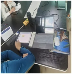 接下来,东升老师重点介绍了常用的四个讲课设备:1.手机+支架+A4纸, 2.笔记本+手写板, 3.pad+蓝牙(电容)笔, 4.surface+触控笔等,通过图文并茂的课件及演示自带的设备,让老师们清晰地了解了各种设备的使用要求、优点、缺点及操作方法。会场气氛热烈,与会教师不停发问,参与演示,喜悦之情溢于言表。