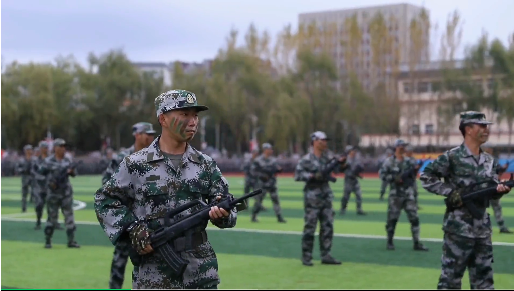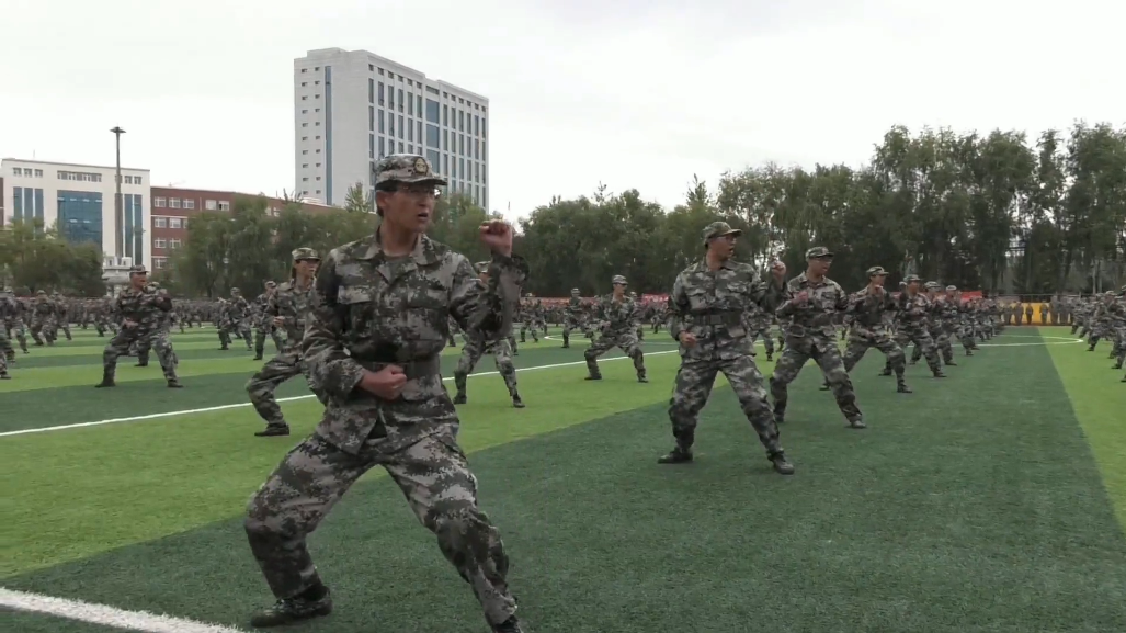 “杀,杀,杀……”学子们进行了军体拳、刺杀操表演。军体拳整齐划一,刚劲有力,尽显勇猛。刺杀动作干净利落,呐喊气势磅礴,全面展示了训练成果,展现了长科学子崭新的精神风貌。