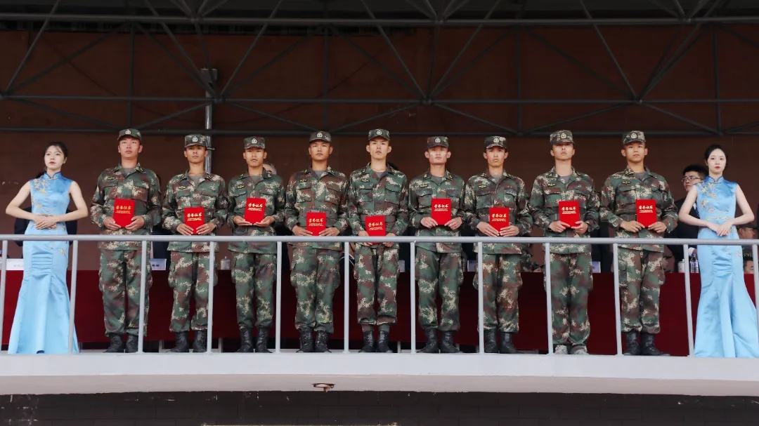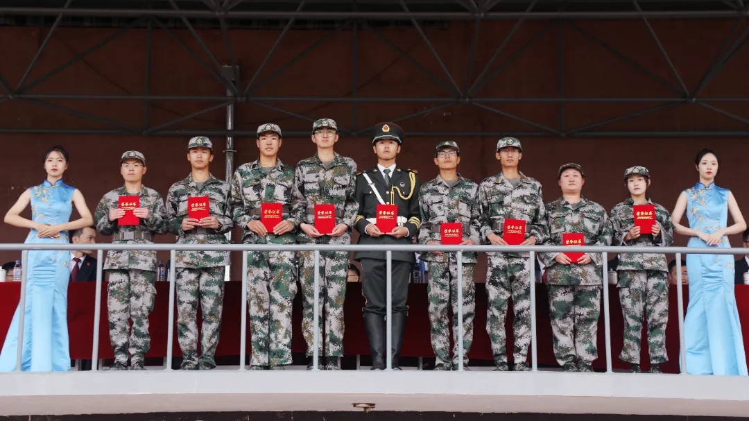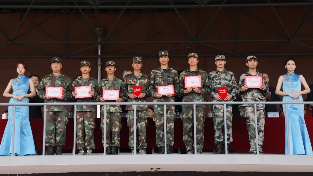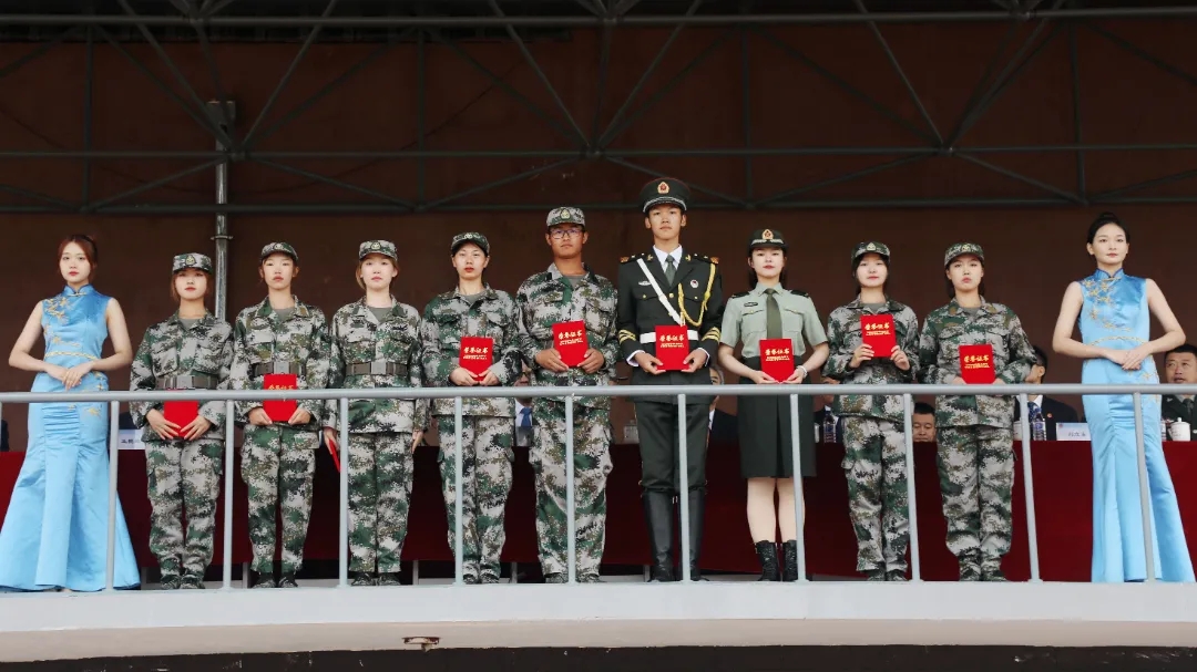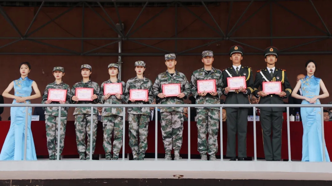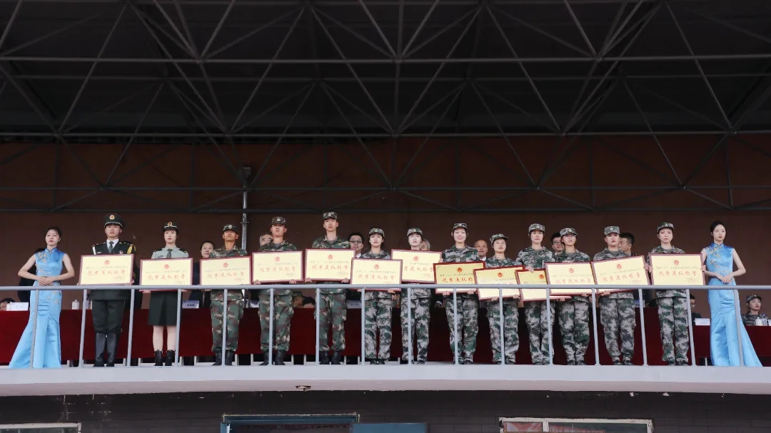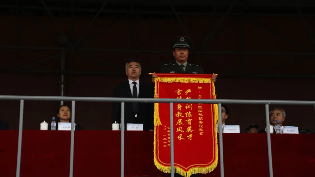 表演结束后,秦磊向长春科技学院预备役教官赠送锦旗,向全体承训教官表示诚挚谢意。党委书记林佳彬、副校长王艳梅、盖同祥、党委副书记宋学山分别宣读了《大学生预备役士兵授衔命令》、《关于表彰军训团优秀连队和优秀指导员的决定》、《关于表彰长春科技学院优秀军训教官、优秀预备役教官、国旗护卫队优秀旗手的决定》、《关于表彰军训团优秀训练标兵和优秀内务标兵的决定》。随后,主席台就坐领导为预备役大学生授衔;为获得军训团优秀连队、优秀指导员、优秀军训教官、优秀预备役教官、国旗护卫队优秀旗手、军训团优秀训练标兵、优秀内务标兵颁发了奖牌、荣誉证书。