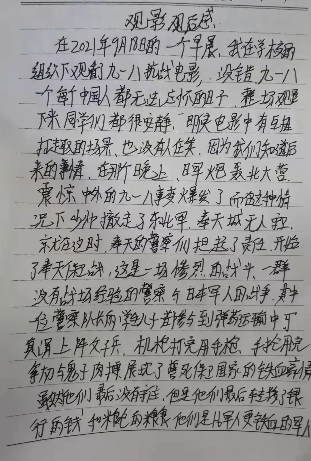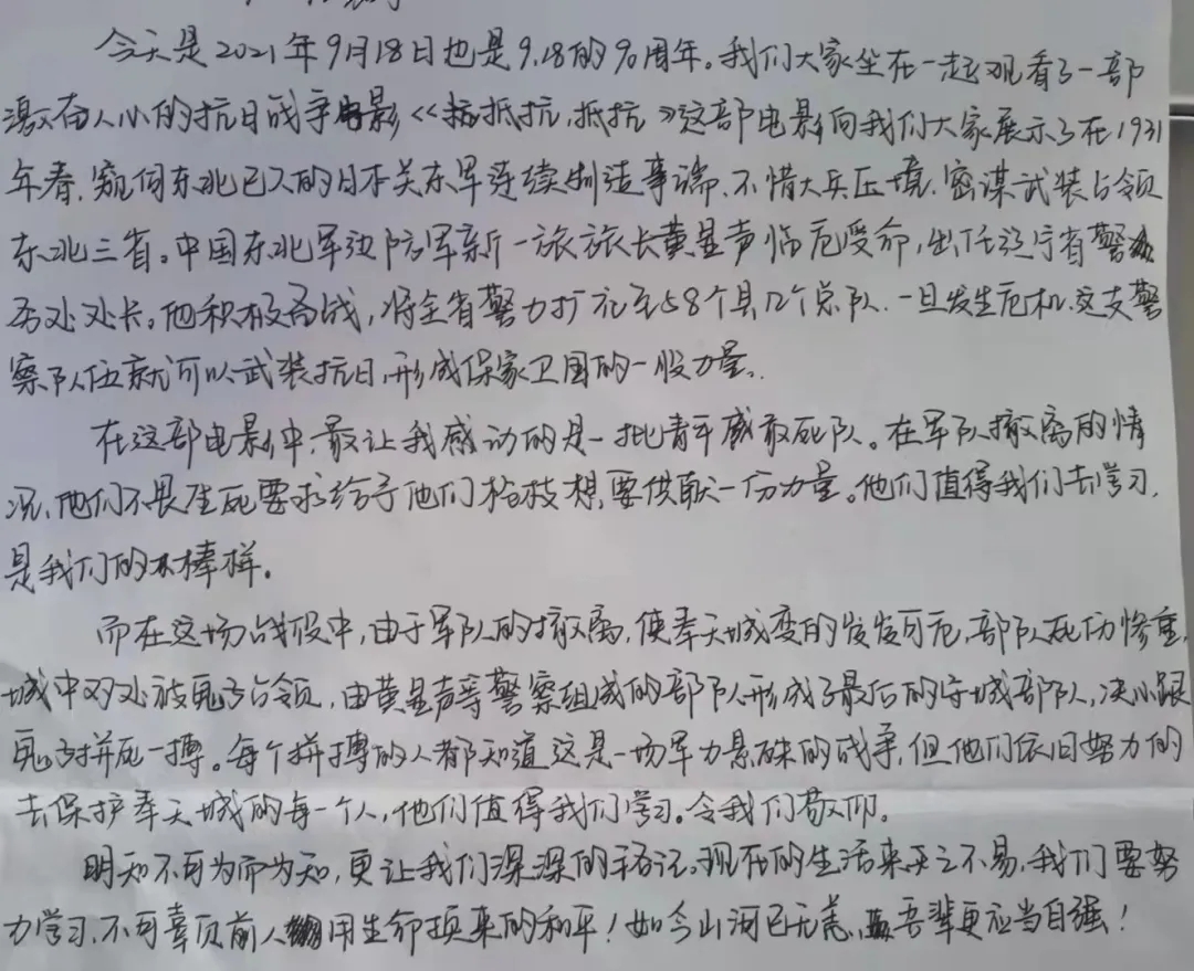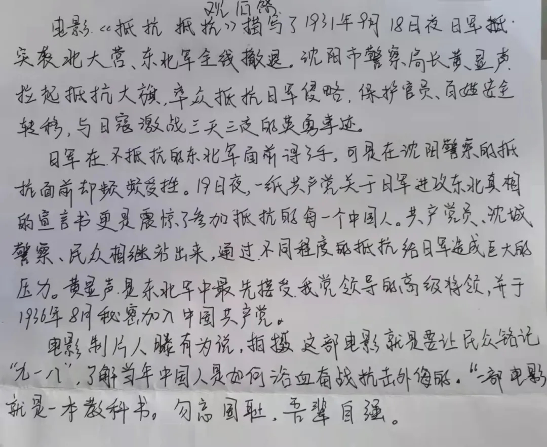 影片播放期间,同学们聚精会神,屏息凝视,静静观看影片,深深被中国军民保家卫国的精神所感动。影片结束后,在场同学展开了交流与讨论,他们感慨万分,纷纷表示定会珍惜今天来之不易的幸福生活,努力奋斗,用属于自己的一份力量来回报社会。