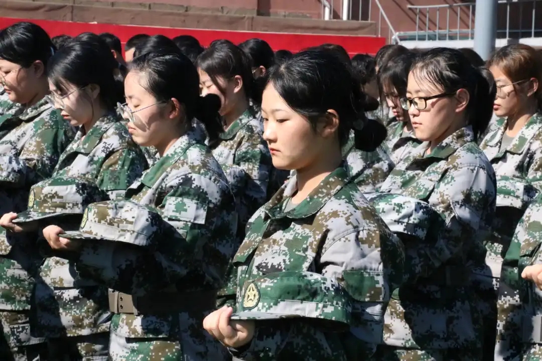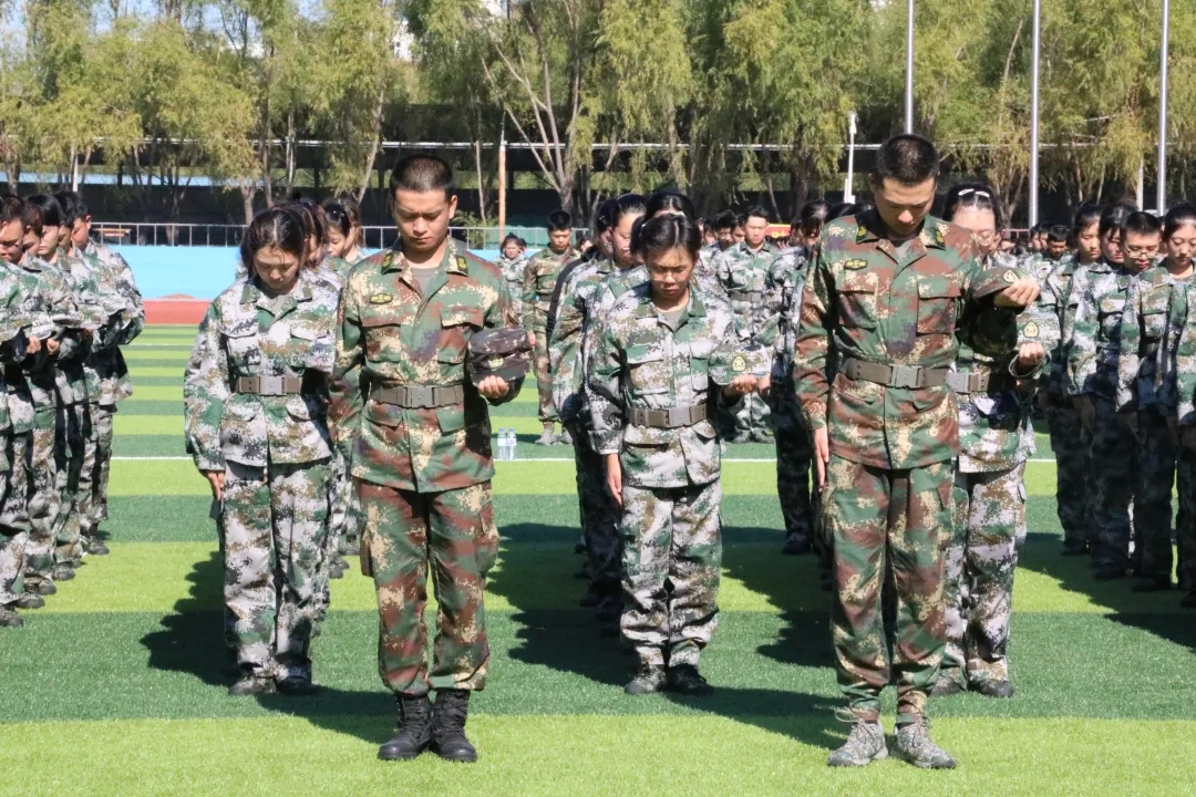 今天9:18鸣笛声准时响起,在训练场军训的新生们脱帽默哀。