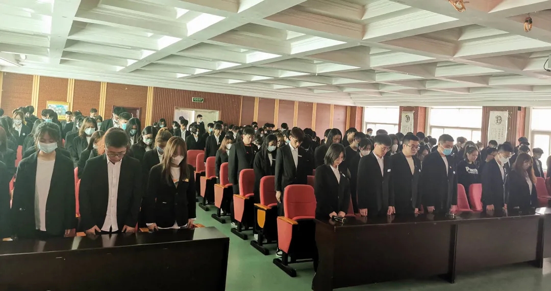 为悼念在九·一八事件中牺牲的革命烈士和同胞,主持人在9:18分让大家全体起立进行默哀,全体肃然起敬。哀悼结束后,学生代表上台讲述自己的感悟,启发同学们在和平年代,我们要发挥自己的每一分能量,勿忘国耻、奋发图强,为学校建设增砖添瓦。