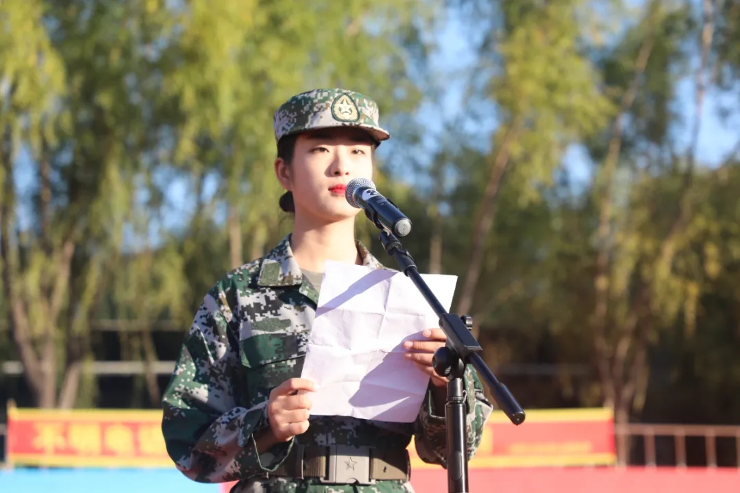 6时30分,升旗仪式正式开始。在军训总教官曾健洪亮声音中,由预备役学子组成的校国旗护卫队迈着铿锵有力的步伐,护送五星红旗走到升旗台,校军乐队奏响义勇军进行曲,升旗手奋臂将国旗展开,在全体新生注目礼中,鲜艳的五星红旗冉冉升起……“作为新时代的青年,作为百川之中最有力的后浪,我们要脚踏实地的去铸造梦想,不辜负身上的家与国,不辜负脚下踏着的万里山河!”语言文化学院学生霍明霞在国旗下发出铮铮誓言。