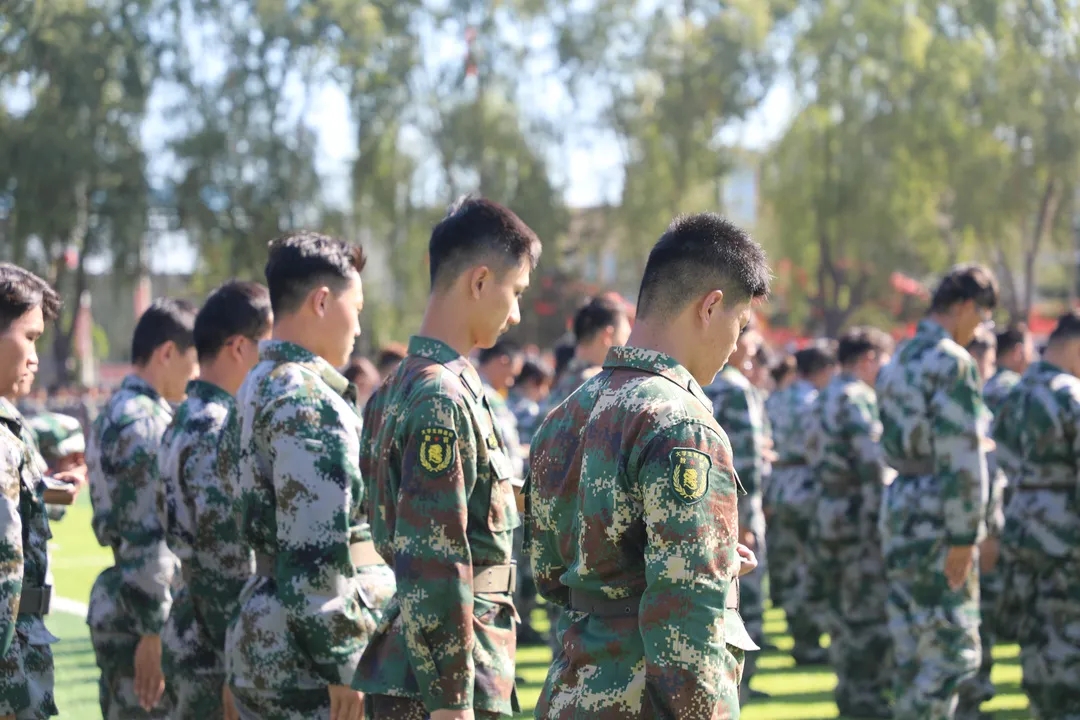 9时18分,防空警报在长春上空骤然响起,所有军训新生在教官指挥下,表情凝重、神情肃穆,低头为“九·一八”死难同胞默哀,缅怀革命先烈。
