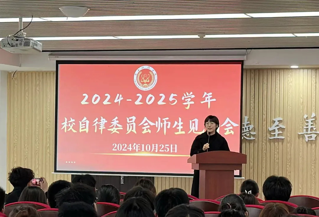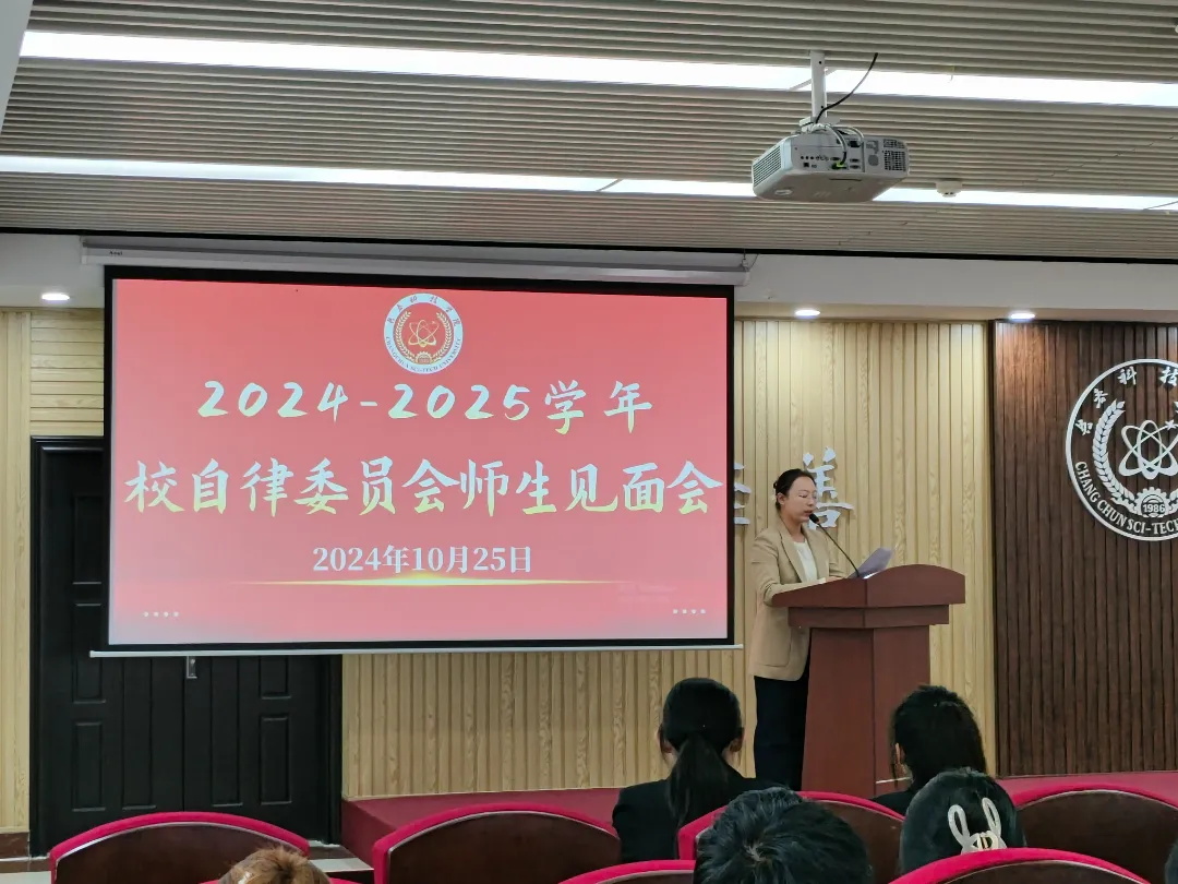 长春科技学院2024-2025学年校自律委员会师生见面会顺利召开。相信在校自律委员会全体成员的共同努力下,将绽放出更加耀眼的光芒,书写更加辉煌的篇章,为持续构建安全、健康、文明、自律的校园文化建设贡献自己的青春力量。