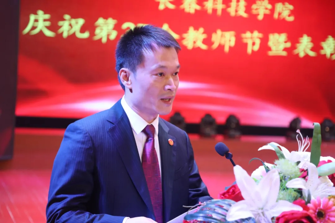 赓续百年初心,担当育人使命。9月9日下午,长春科技学院庆祝第37个教师节暨表彰大会在东鳌学术论坛——国际会议中心举行,表彰学校涌现出的先进集体和先进个人,弘扬尊师重教的良好风尚,奋力推进教育事业健康发展。长春科技学院校长秦磊,党委书记林佳彬,副校长王艳梅、盖同祥,党委副书记宋学山,副校长刘晓辉、高杰,校长助理刘立东,各分院部、处室领导及教师代表参加大会。