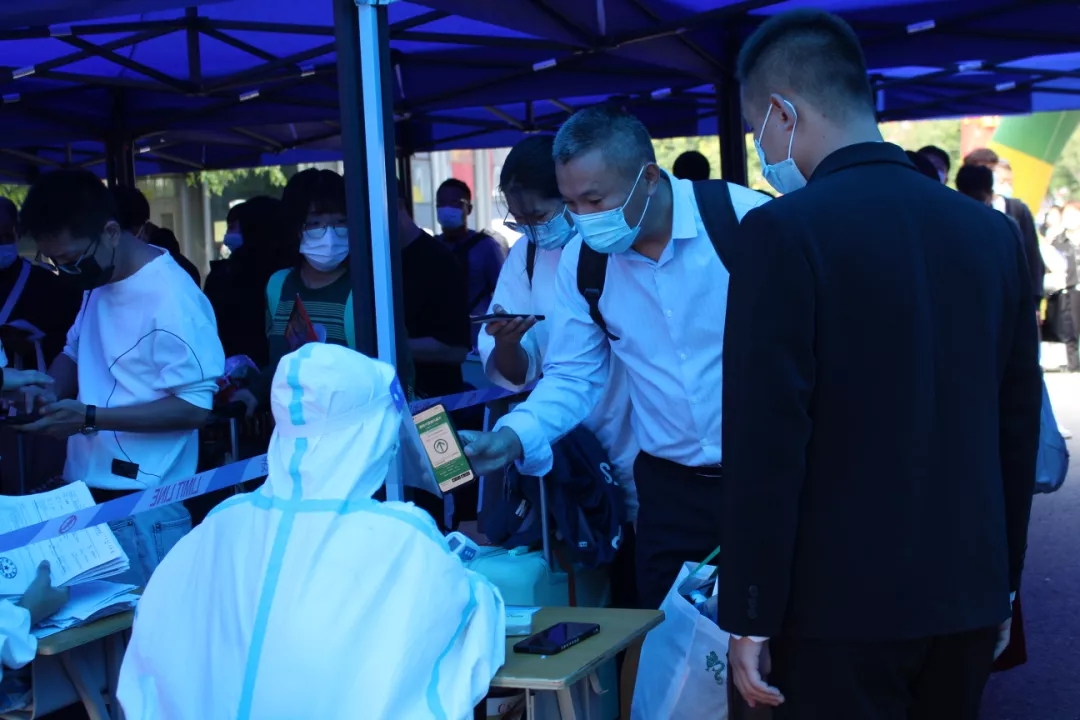 核验“健康码”“通信大数据行程卡”、48小时核酸检测报告,扫码测温、行李消杀……在志愿者的引导下由专属通道进入进入校园。核酸检测现场,新生们依次排队、分批进场,防疫工作平稳有序。