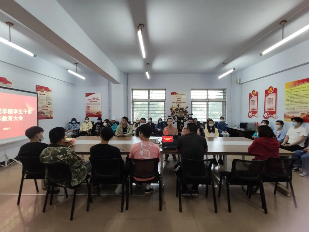 为加强学院学生干部队伍建设,提升全体学生干部综合素质,我院于2021年9月9日下午,建筑工程学院在2214召开学生干部警示教育大会。此次会议由学工办主任郭健新主持,全体学生干部参加会议。