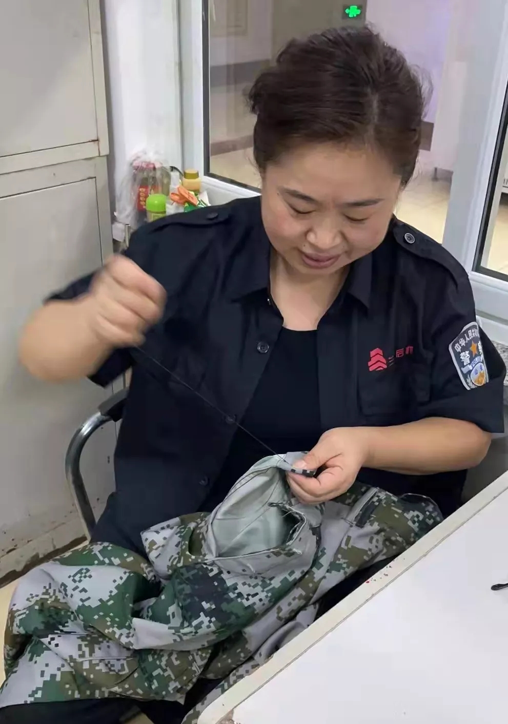 十八舍阿姨平丽,为了让学生们穿上得体的军训服,12日晚在门卫室给新生改制军训服一直到深夜……“学生们来到一个陌生的环境,让他们有回到家的感觉。这是我们要做的首要事情。”王周芳主任介绍。