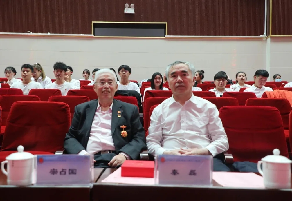 比赛最后,学校党政领导班子全体成员带领机关党总支合唱团带来合唱表演《我们走在大路上》《没有共产党就没有新中国》,场下观众全体起立,共同吟唱,台上台下一片欢腾,将整场活动推向了高潮。