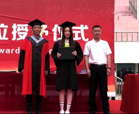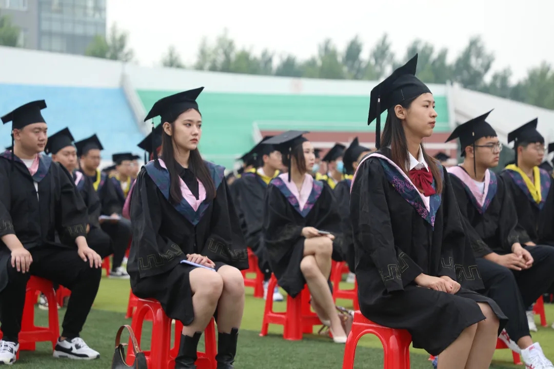 主席台上,学校党政主要领导和各分院院长、副院长与毕业生们一同见证大学生涯最美好的时刻,依次为学子们拨穗正冠、授学士礼并合影留念。在全场合唱校歌声中,毕业典礼圆满结束。