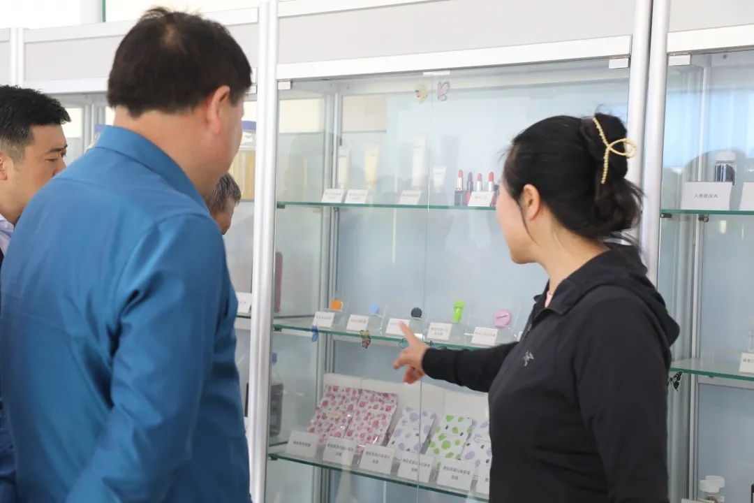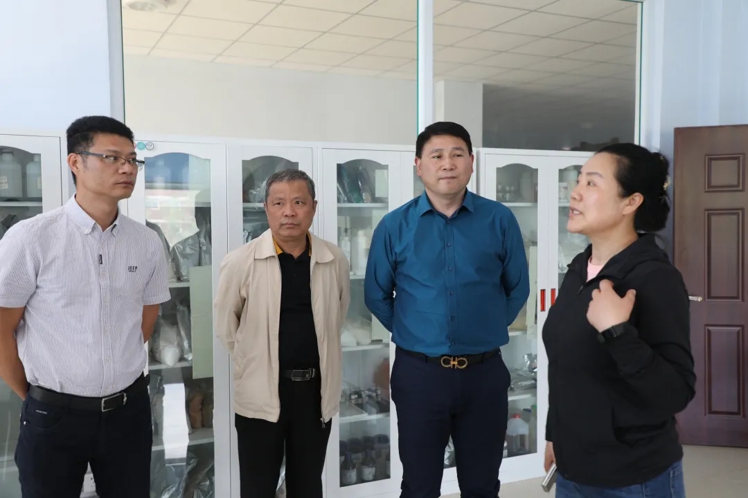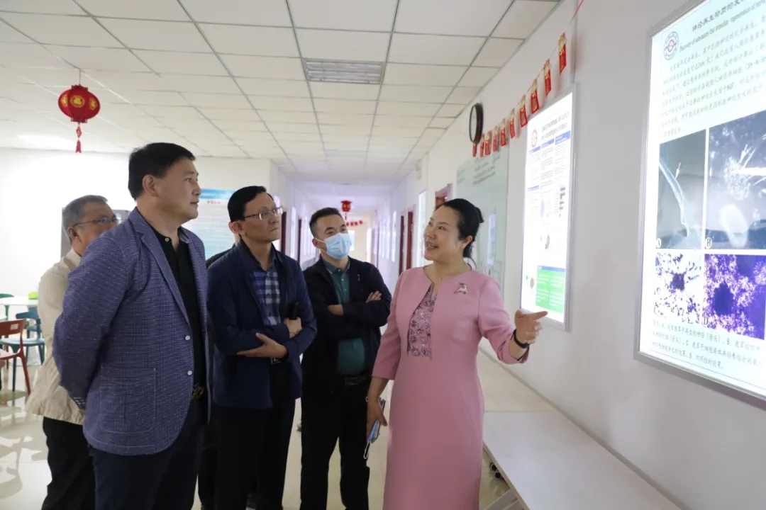 在学校行政楼全景沙盘前,副校长王艳梅向来宾介绍了学校规模、基本情况、办学思想及未来发展思路。在实验楼,考察团参观了实验室、聆听了仪器设备、产品介绍,了解了鹿源功能食品、鹿源产品质量检测、鹿源中药化学等方面的研究情况。