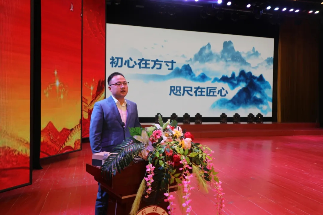 报告会上,“全国五一劳动奖章”刘洋作题为《初心在方寸,咫尺在匠心》报告。他围绕“用奋斗定义青春”“进步的法宝就是学习”“时光不负追梦人”“坚守匠心育新人”“不忘初心以技报国”五个维度诠释工匠精神,结合自身成长历程和参加各层次技能大赛过程,讲述了自己从16岁开始读技工学校到成为正高级讲师的心路历程和感人事迹,使大家对工匠精神有了新的理解。