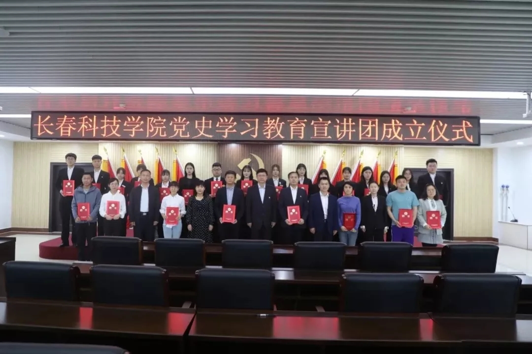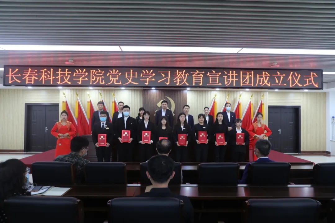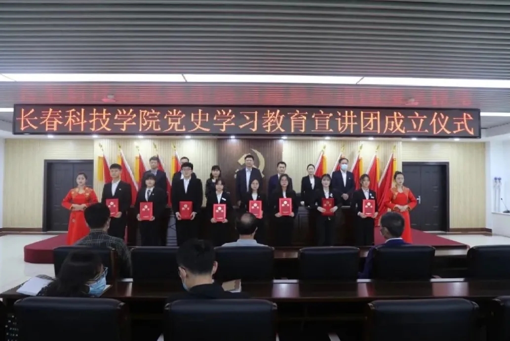 5月20日,长春科技学院在行政楼409会议室举行党史学习教育宣讲团成立仪式,面向全校师生党员,青年学生群体,开展党史宣讲,讲好党的百年故事。