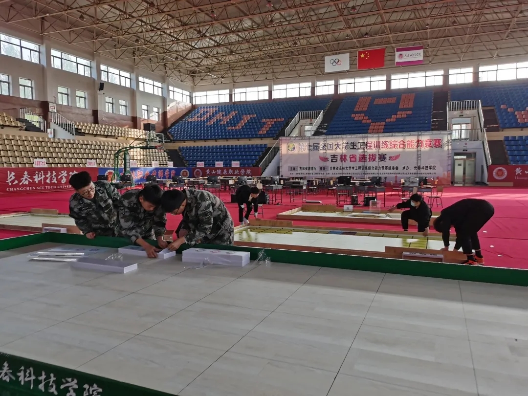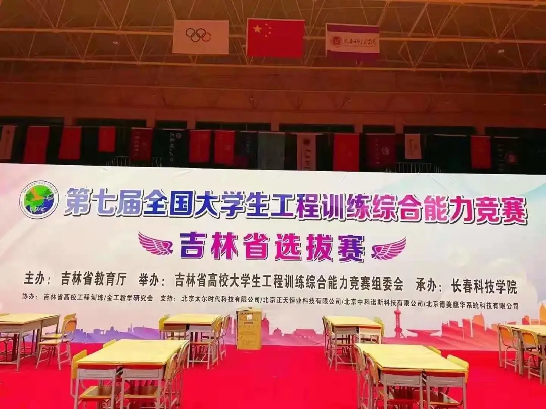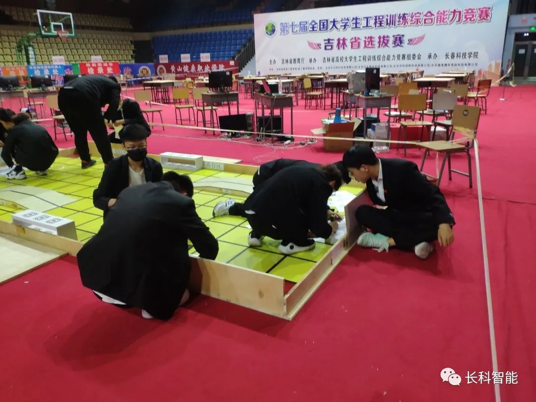 付出就会有收获,经过全校十四个部门的共同努力,在校领导的指挥下,第七届全国大学生工程训练综合能力竞赛吉林省选拔赛于2021年5月14日在长春科技学院体育馆如期举行。当我省22所参赛高校的师生,在我校派出的志愿者同学的引领下来到比赛现场时,大家立刻被我们准备的场地所震惊。各赛道铺设专业达标。场地内,按学校划分区域,贵宾席、专家席、裁判席、指导教师席、医务室、隔离室等一应俱全。得到专家、参赛教师和学生的交口称赞。
