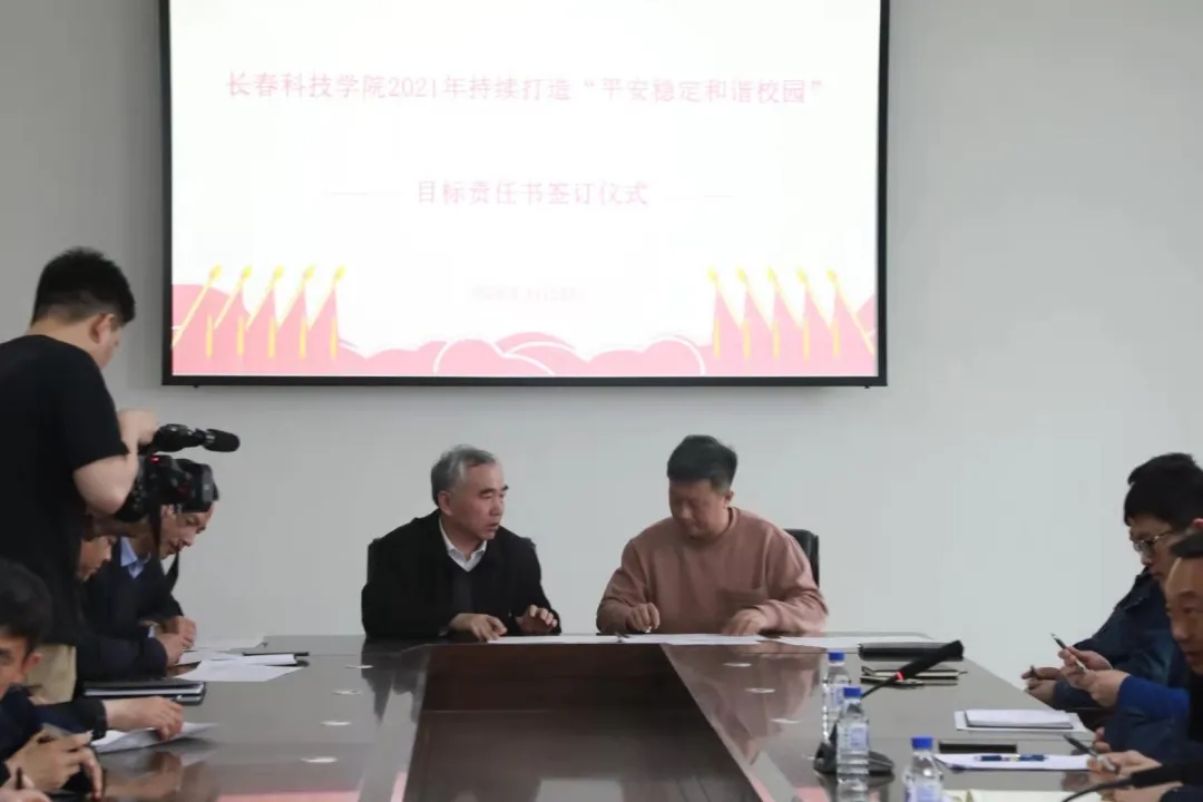 最后,秦磊校长代表学校同各单位签订《长春科技学院2021年持续打造“平安稳定和谐校园”目标责任书》。(通讯员:刘洋)