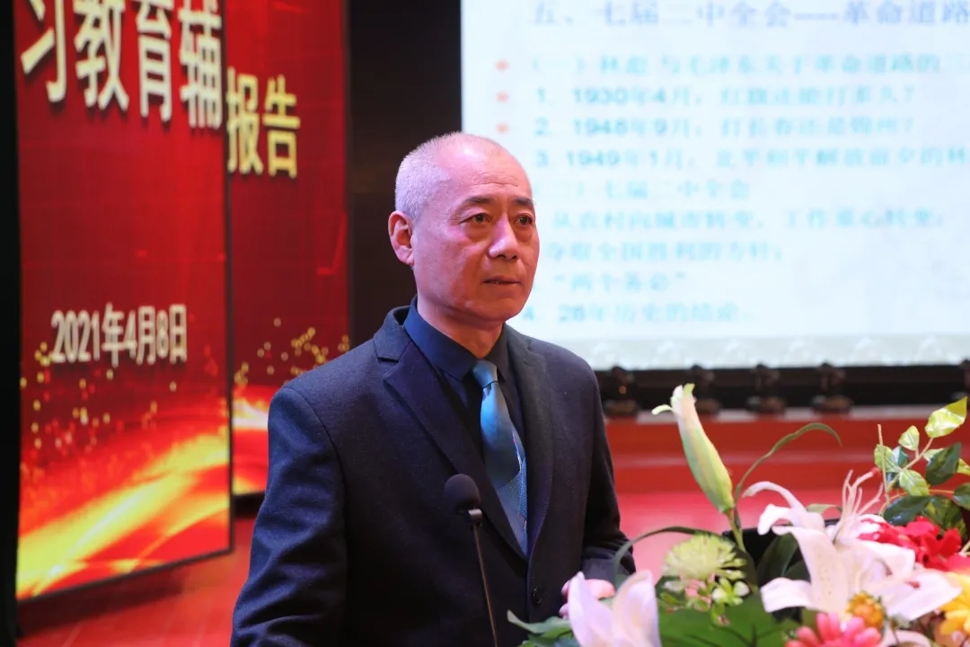 动员大会后,陈学峰教授以“新民主主义革命道路的形成与发展”为主题作党史学习教育辅导报告,他从新民主义革命道路的基础、尝试、形成、经验、实现等方面诠释了没有中国共产党的努力,没有中国共产党人做中国人民的中流砥柱,中国的独立和解放是不可能的,中国的工业化和农业近代化也是不可能的。讲解深入浅出,观点深刻、内容丰富、事例翔实。辅导报告会由党委常委、宣传统战部部长高芳主持。