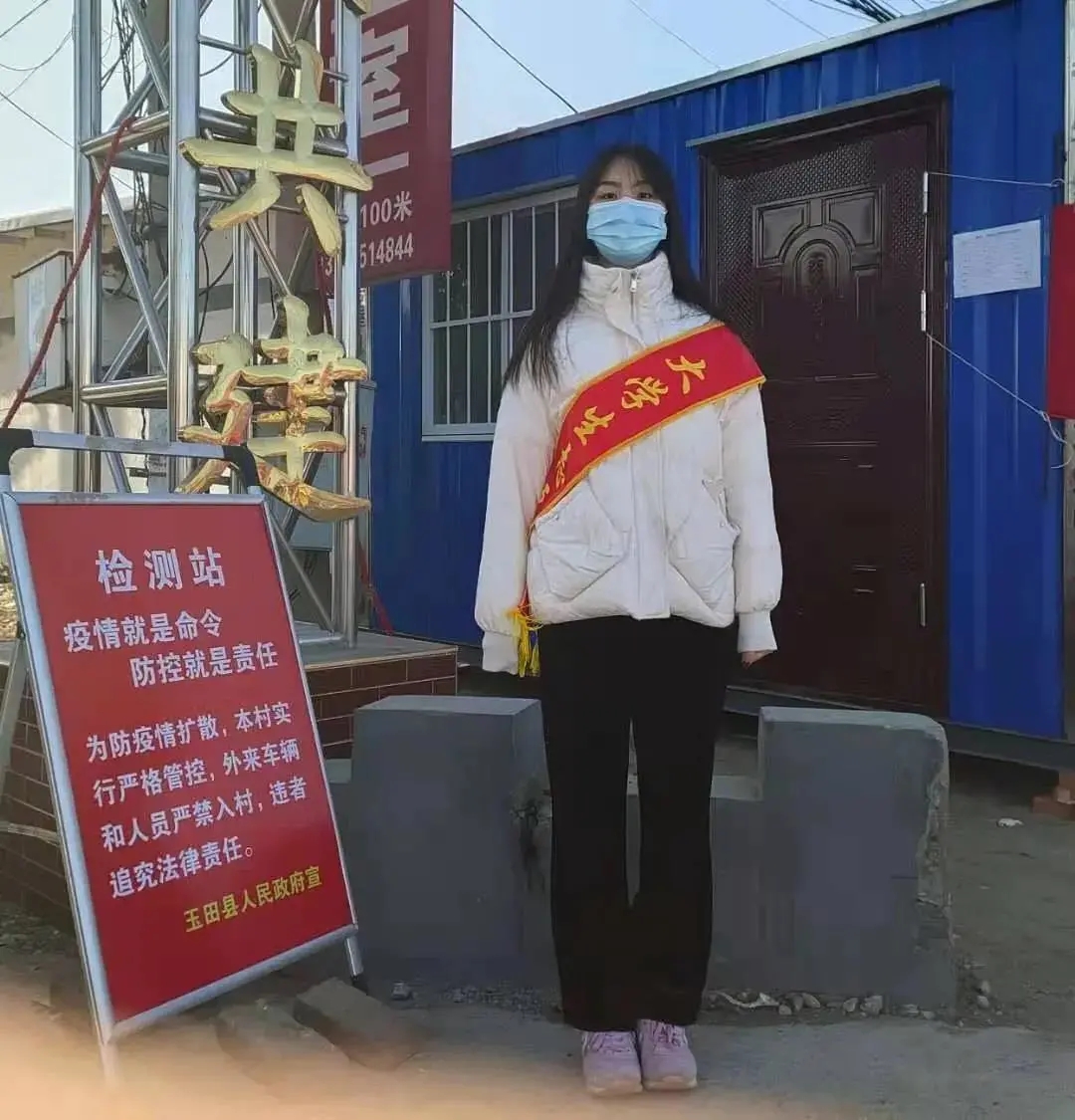 20级视觉传达设计一班的弓笑笑也不例外,她在自己家乡河北省邯郸市丛台区南沿村镇西大慈村也做了一名志愿者,积极的参与了当地的疫情防控,协助村内干部开展防疫工作,为来往路人测体温,信息登记,查验行程码,消毒等。面对疫情,她说:“虽然辛苦,但是相比一直坚守在一线的医护人员,这都不算什么。”