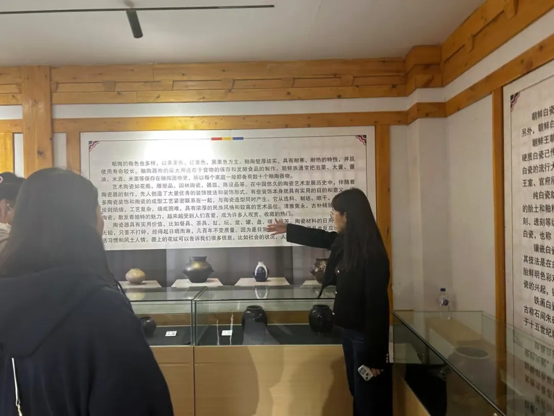 在民俗馆内,思想道德与法治教研室主任张狂静进行现场教学,给学生们讲述朝鲜族的民族特色与文化历史。让同学们亲身感受朝鲜族的独特魅力,拓宽了视野,增进了对不同民族文化的理解与尊重。思想道德与法治课教师刘艳琦发表感言:“通过此次参观学习,将乡村振兴战略思想融入思想政治理论课实践教学活动。从而引导当代大学生,“扣好人生第一粒扣子”,促使大家广泛参与乡村建设,助力乡村振兴,努力成长为担当民族复兴大任的时代新人。”