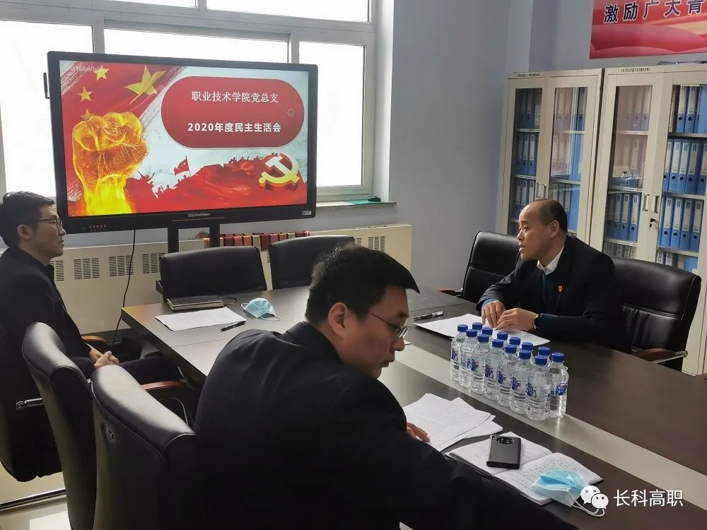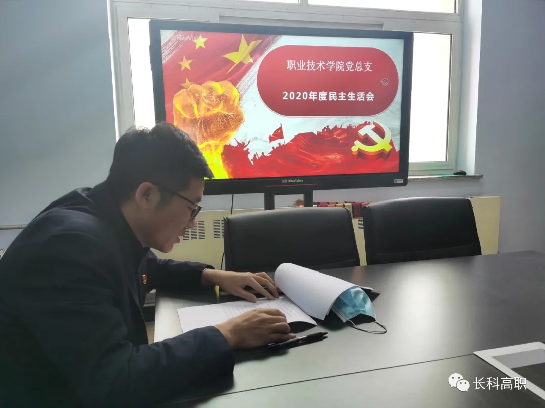 为开好专题民主生活会,职业技术学院党总支按照校党委的部署和要求,精心准备,扎实做好会前工作。紧扣本次民主生活会主题,认真学习贯彻习近平新时代中国特色社会主义思想,深入学习贯彻习近平总书记关于教育的重要论述,加强政治建设,提高政治能力,坚守人民情怀。坚持问题导向,结合工作实际,听取师生群众意见,围绕主题查摆问题、统一思想、凝聚共识,认真撰写对照检查材料,为开好高质量的民主生活会打下坚实基础。会上,班子成员联系个人思想和工作实际,进行自我检查、党性分析,开展批评和自我批评。