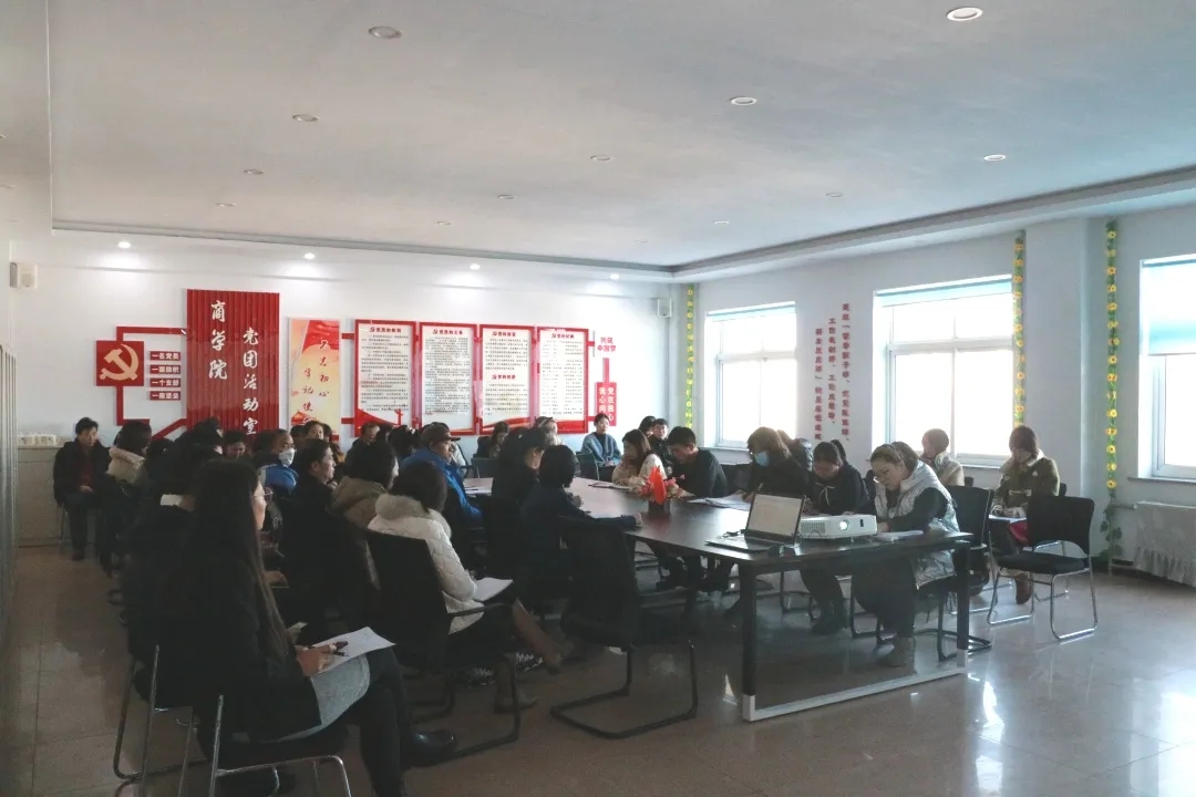 参加此次会议的成员有商学院院长兼党总支书记王晓光、商学院党总支副书记兼副院长武强、副院长成颖、院长助理陈海英、综合办主任兼学工办主任山珊、教学秘书、各专业系主任及全体教师。