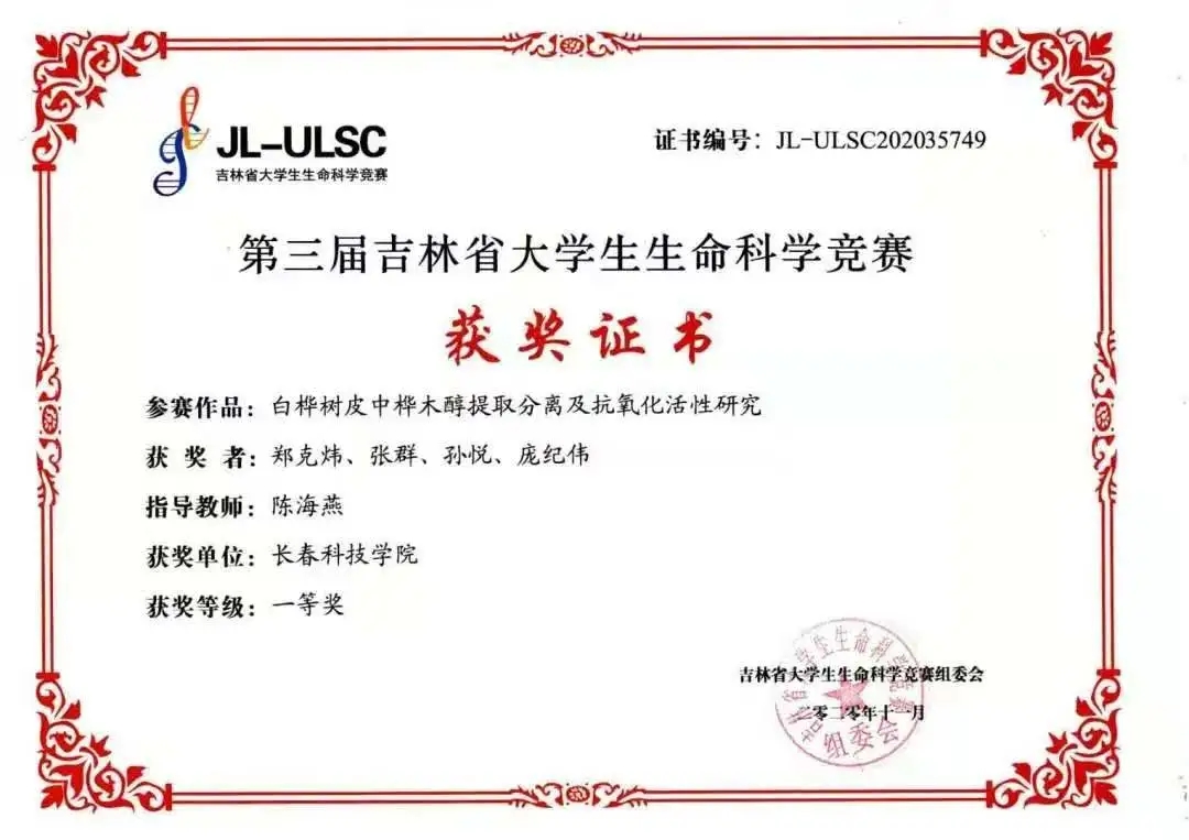 第三届吉林省大学生生命科学竞赛,陈海燕、于妍、张英楠、徐晶老师分别指导学生荣获省部级一等奖,刘艳老师指导学生荣获省部级二等奖。